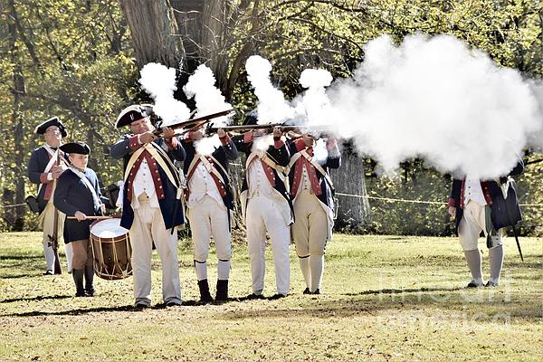 Maryland Revolutionary Reenactors fire their muskets at General Smallwood burial site in Smallwood State Park.